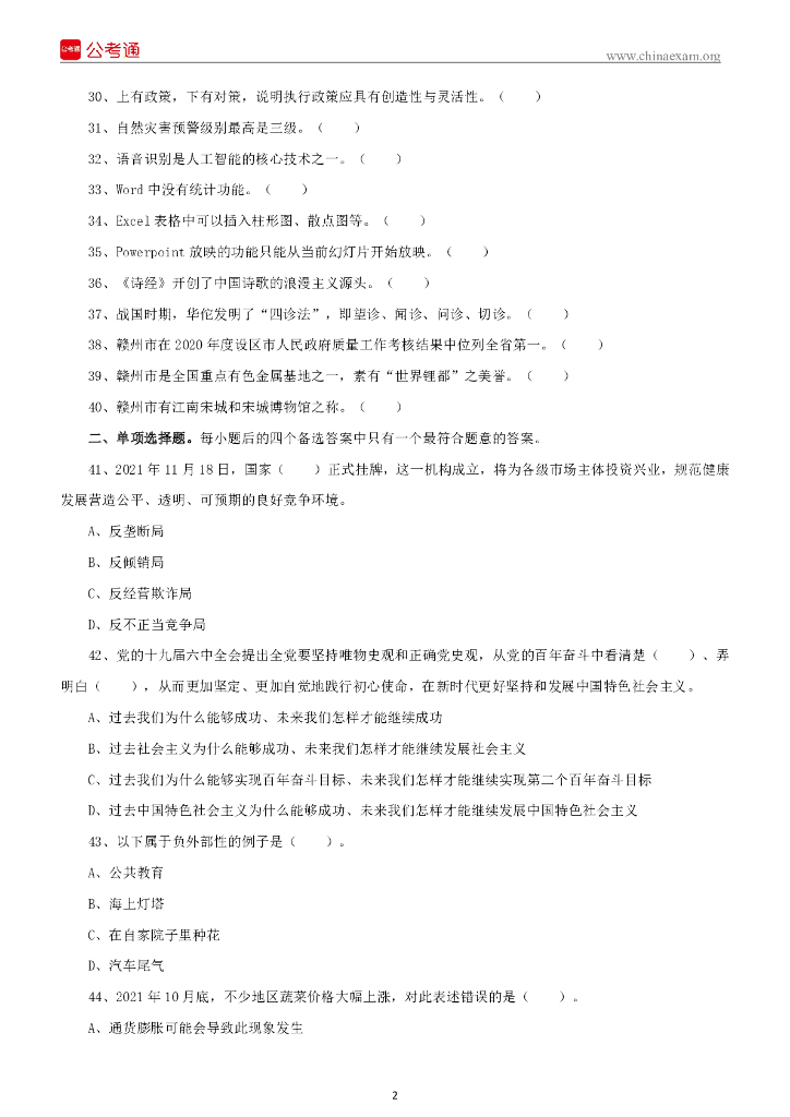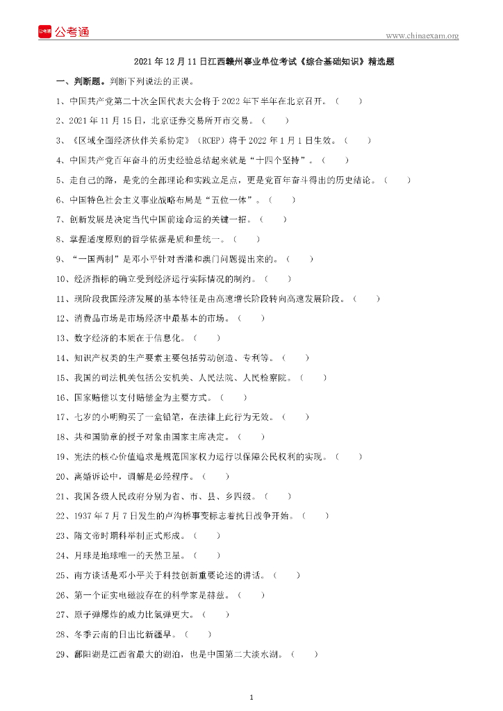 2021年12月11日江西赣州事业单位考试《综合基础知识》精选题.pdf