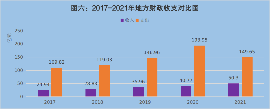 全年地方财政支出149.65亿元,比上年下降22.7%。一般公共预算支出132.18亿元,增长2.9%。其中,一般公共服务支出14.79亿元,增长34.3%;公共安全支出9.7亿元,下降13.3%;教育支出17.71亿元,增长1.1%;科学技术支出2.33亿元,增长2.2%;文化旅游体育与传媒支出3.18亿元,增长52.9%;社会保障和就业支出10.89亿元,下降13.6%;卫生健康支出8.46亿元,下降11.9%;节能环保支出6.29亿元,增长14.6%;城乡社区支出10.07亿元,下降18.1%;农林水支出19.74亿元,下降2.57%;交通运输支出10.8亿元,增长17.1%;资源勘探信息等支出3.32亿元,增长50.1%;住房保障支出4.78亿元,增长22.3%。政府性基金预算支出17.47亿元,下降73.3%。