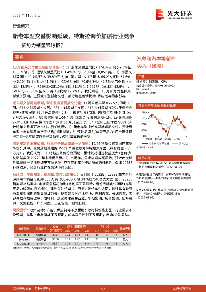 光大证券:汽车和汽车零部件新势力销量跟踪报告:新老车型交替影响延续,特斯拉调价加剧行业竞争.pdf