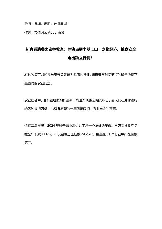 新春看消费之农林牧渔:养猪占据半壁江山,宠物经济、粮食安全走出独立行情.pdf