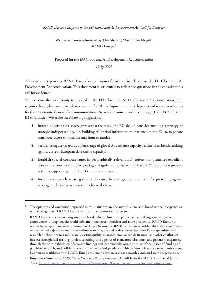 Rand兰德:2025年欧洲对欧盟云和人工智能发展法案的证据回应报告(英文版).pdf