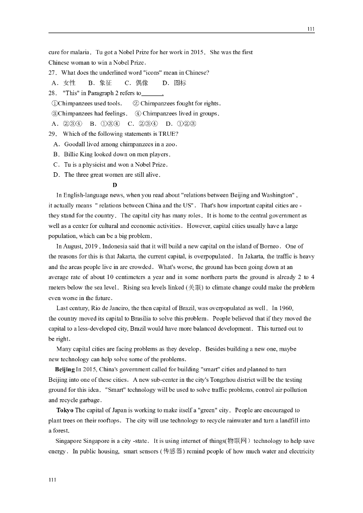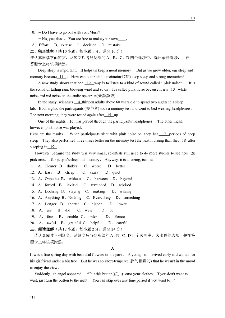 太仓市2020届初三英语教学质量调研测试(含答案)附答案.doc