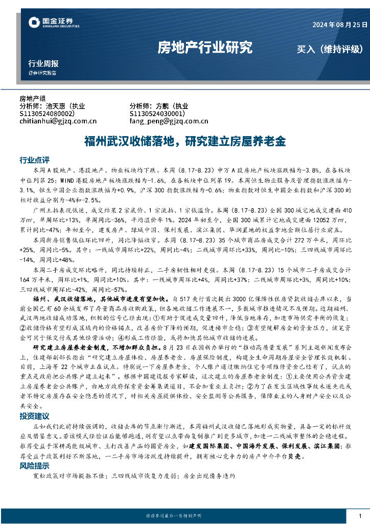 国金证券:房地产行业研究:福州武汉收储落地,研究建立房屋养老金.pdf