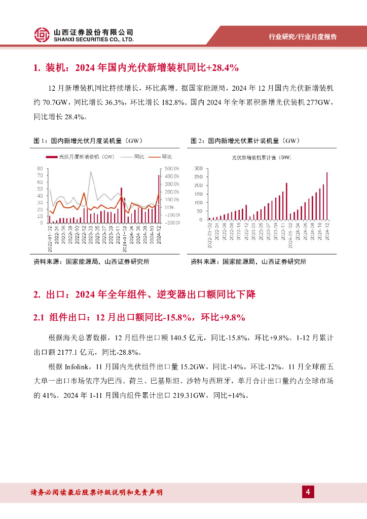 山西证券:202412光伏行业月度报告:2024年光伏新增装机同增28.4%,组件逆变器出口额同比下降.pdf