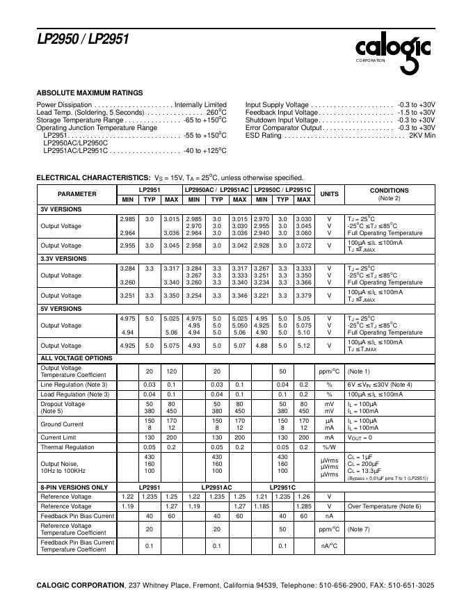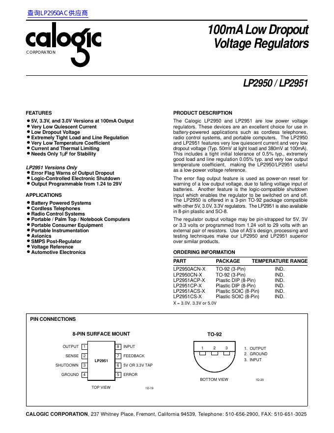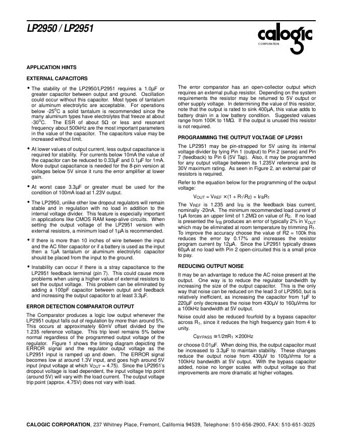 National semiconductor LP2950/LP2951 Series of Adjustable Micropower Voltage Regulators 说明书