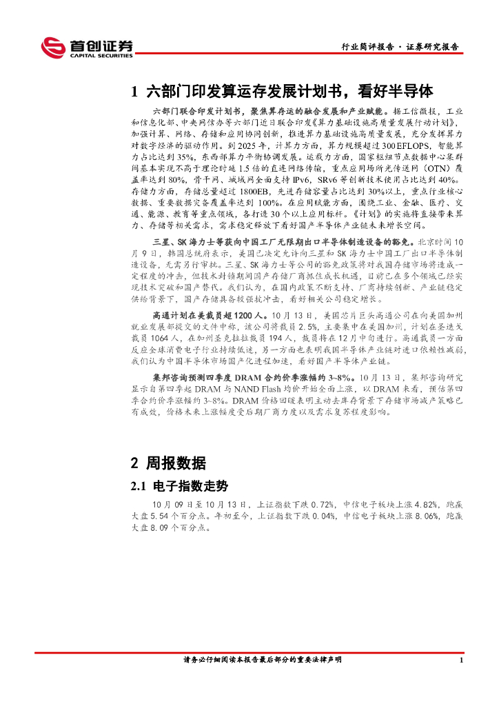 首创证券:电子行业简评报告:六部门印发算运存发展计划书,看好半导体.pdf