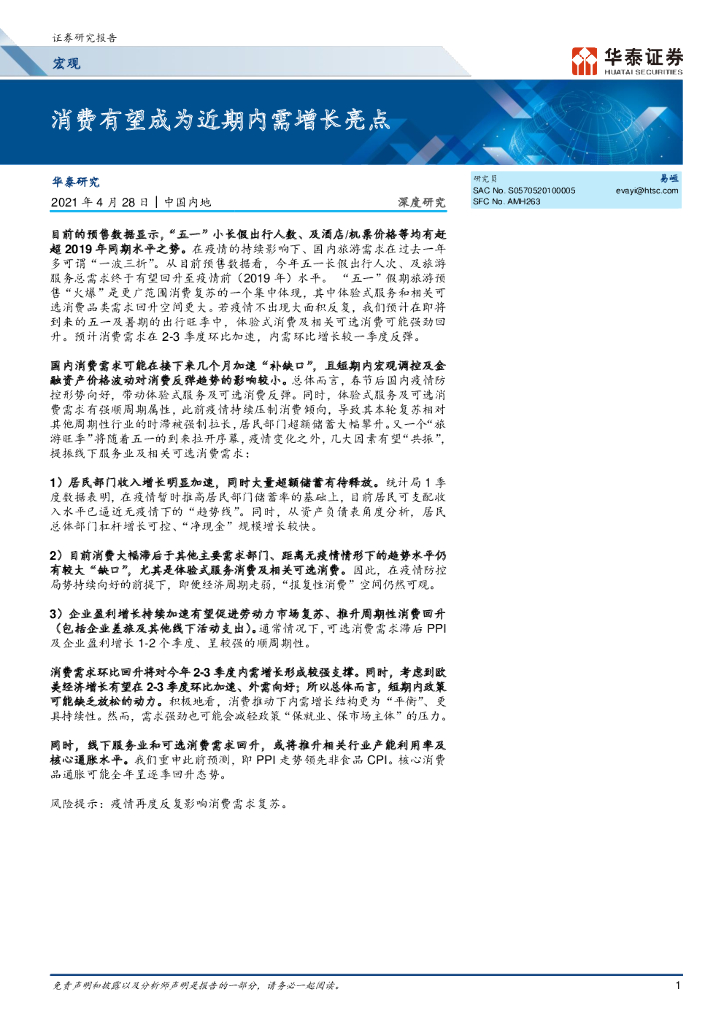 华泰证券:宏观深度研究:消费有望成为近期内需增长亮点.pdf
