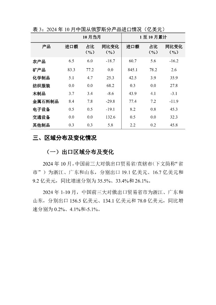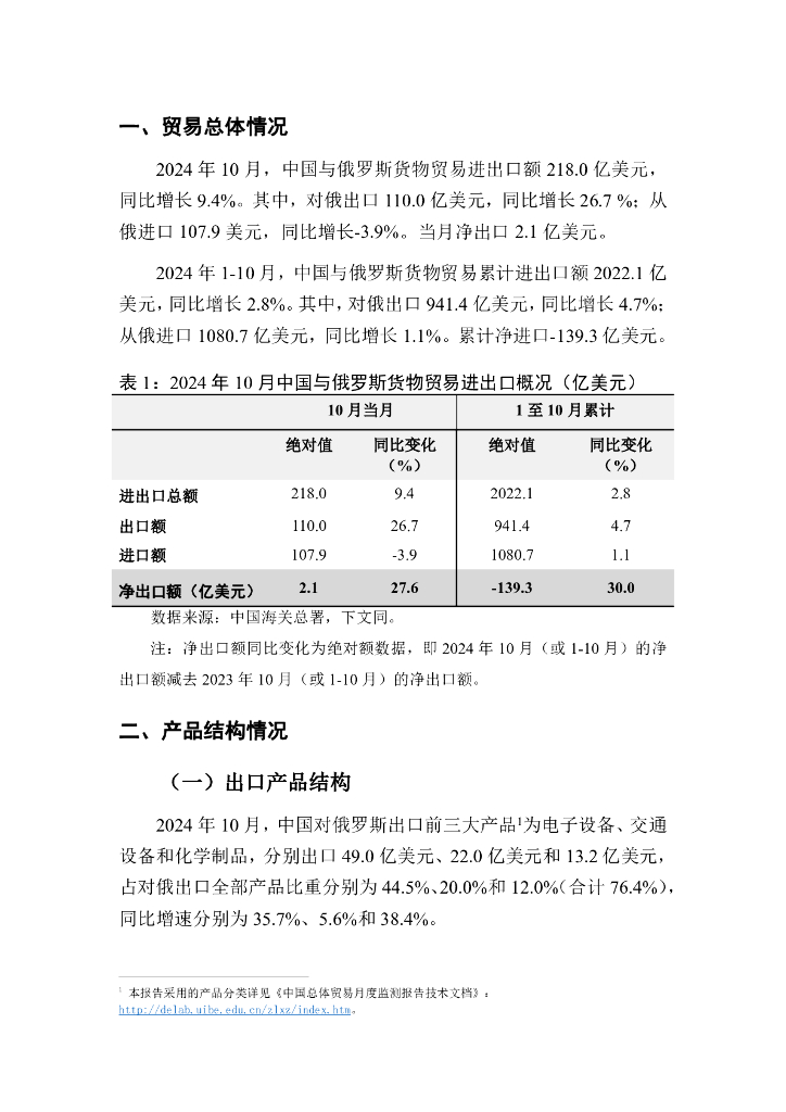 对外经济贸易大学:中俄总体贸易月度监测报告(2024年1-10月).pdf