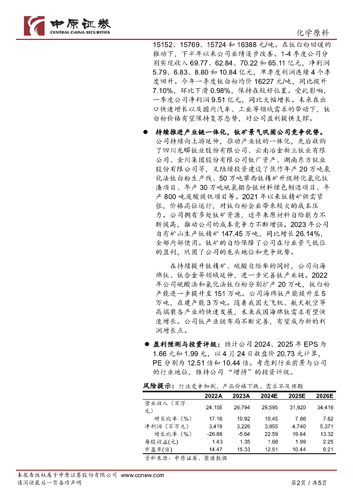 中原证券:龙佰集团(002601)-年报一季报点评:钛白粉涨价带动业绩逐步改善,全产业链优势保障公司长.pdf