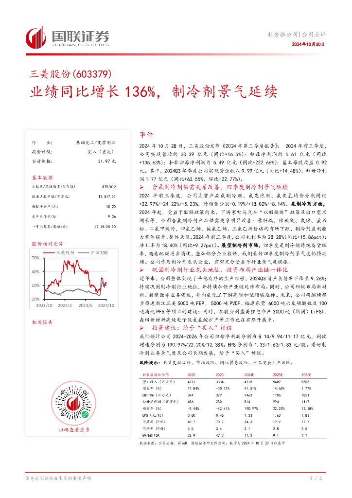 国联证券:三美股份(603379)-业绩同比增长136%,制冷剂景气延续.pdf