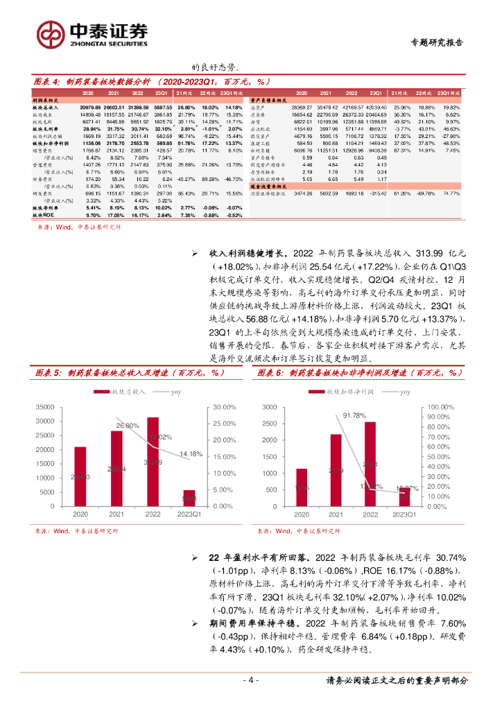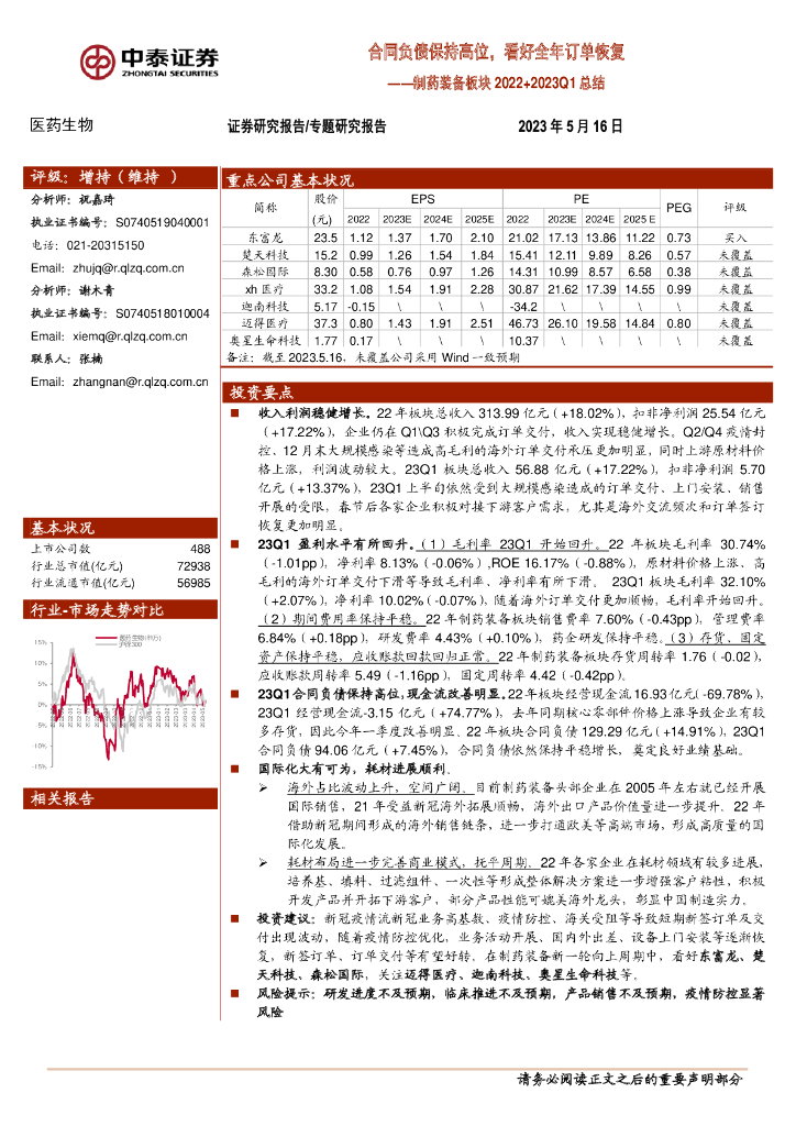 中泰证券:医药生物行业制药装备板块2022+2023Q1总结:合同负债保持高位,看好全年订单恢复.pdf