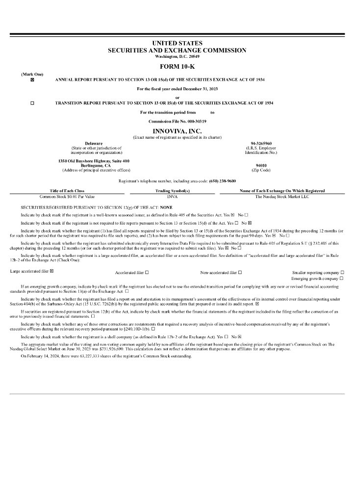 Innoviva, Inc.(INVA)2023财年年度报告(英文版).pdf