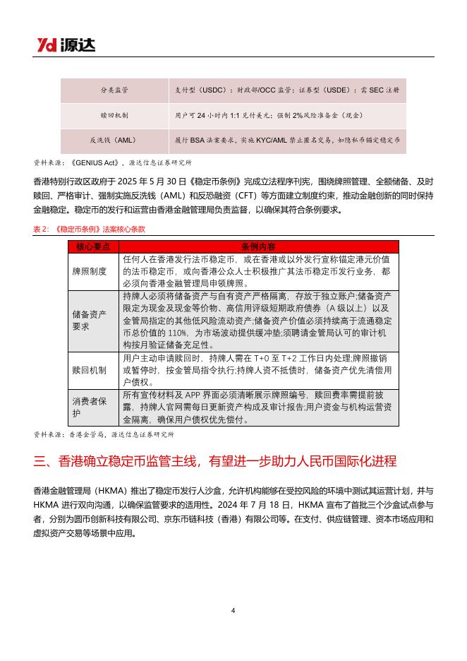 源达信息:稳定币行业动态追踪:香港确立稳定币监管主线,有望进一步助力人民币国际化进程.pdf