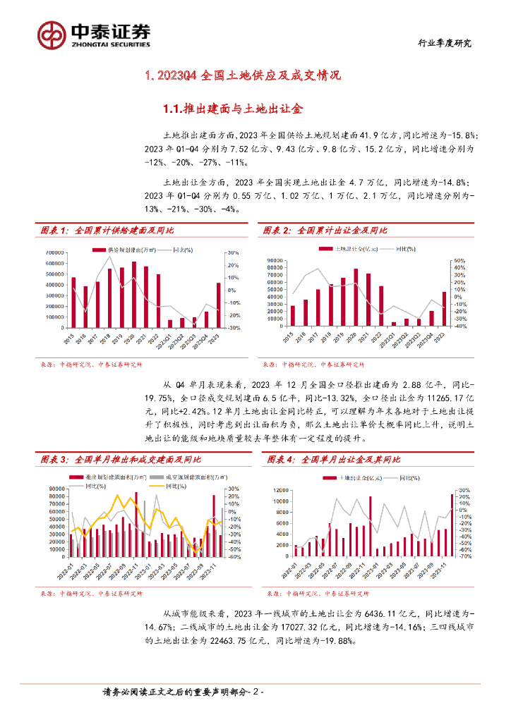 中泰证券:房地产行业Q4土地市场总结:Q4土地出让降幅收窄,一二线城市同比改善.pdf