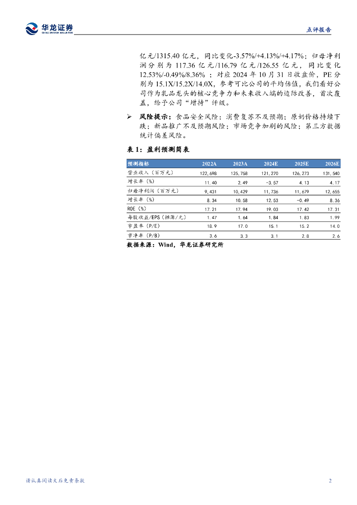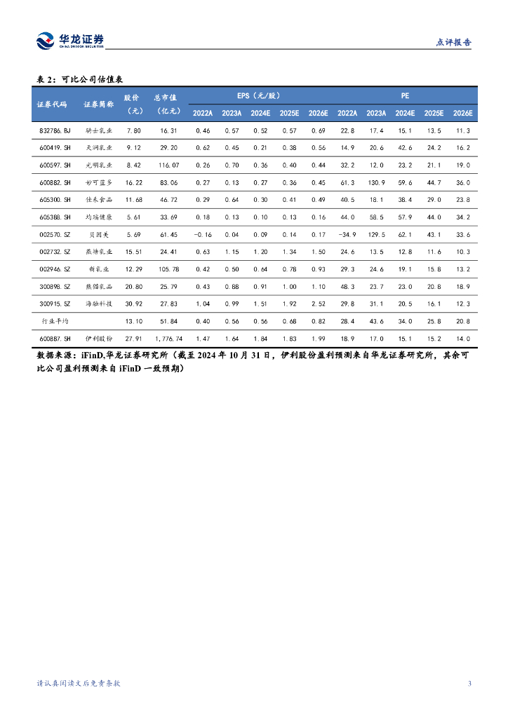 华龙证券:伊利股份(600887)-2024年三季报点评报告:收入边际改善,归母净利润增速较好.pdf