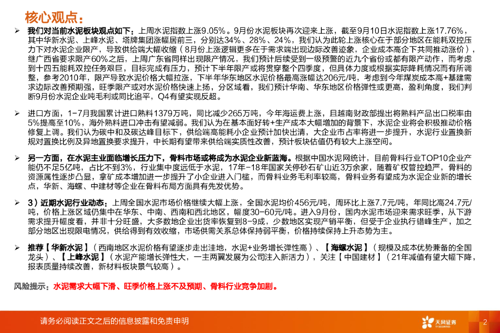 天风证券:水泥制造行业研究周报:受限产影响,两广水泥价格大幅上扬.pdf
