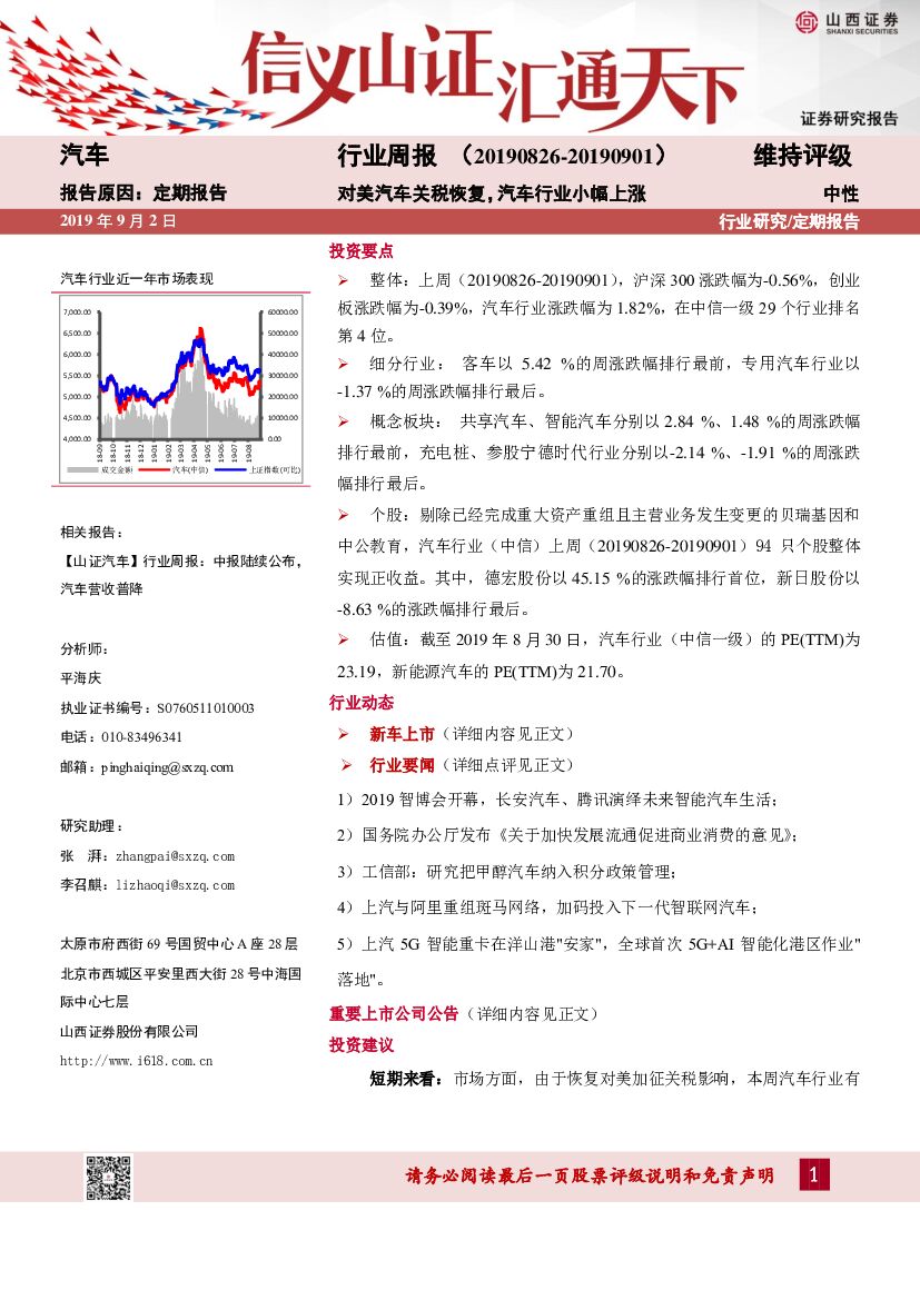 山西证券:汽车行业周报:对美汽车关税恢复,汽车行业小幅上涨.pdf