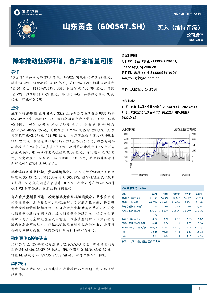 国金证券:山东黄金(600547)-降本推动业绩环增,自产金增量可期.pdf