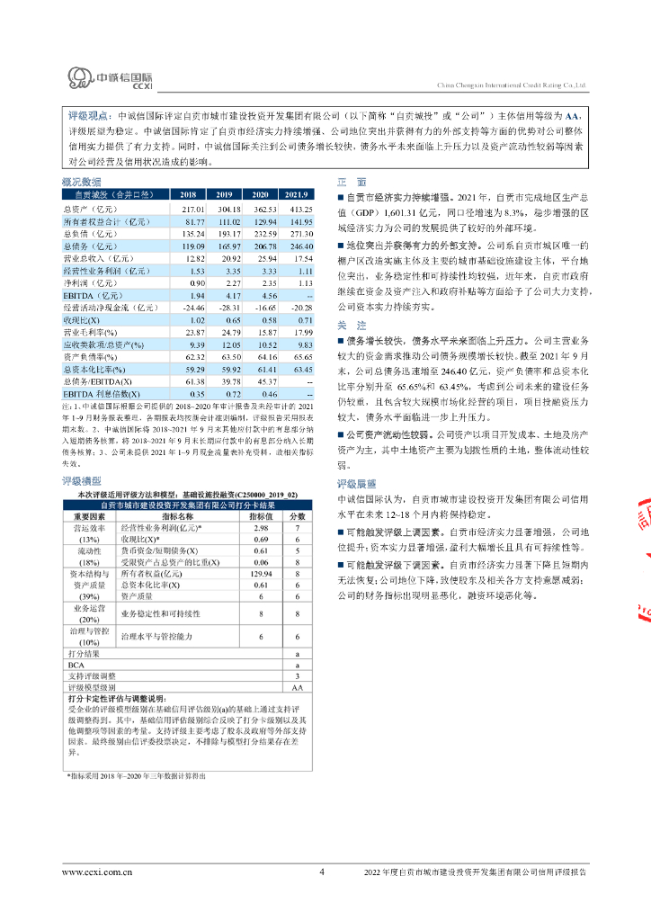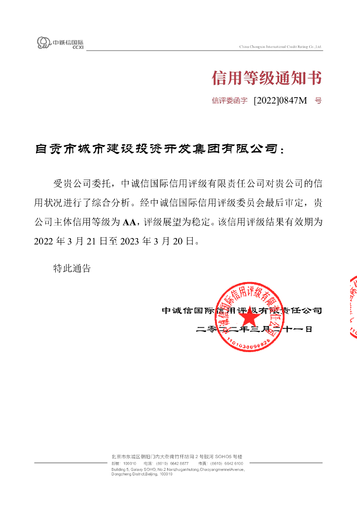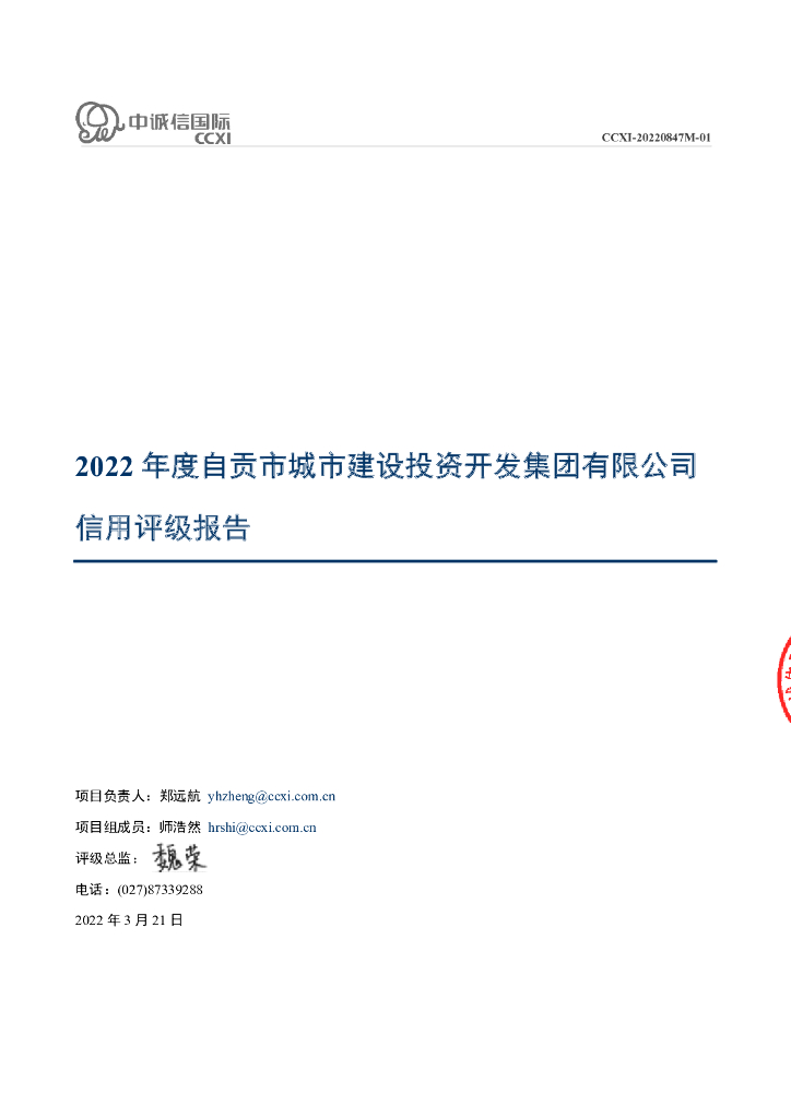 中诚信:2022年度自贡市城市建设投资开发集团有限公司信用评级报告.pdf