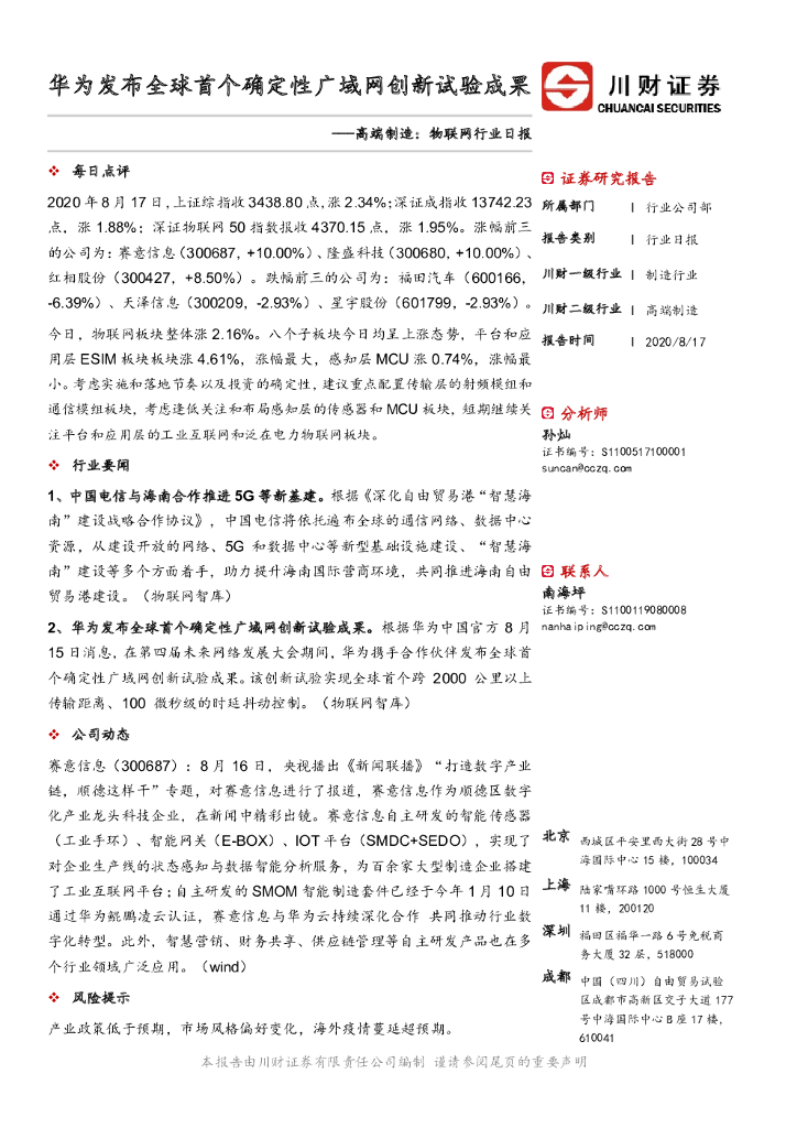 川财证券:高端制造:物联网行业日报:华为发布全球首个确定性广域网创新试验成果.pdf
