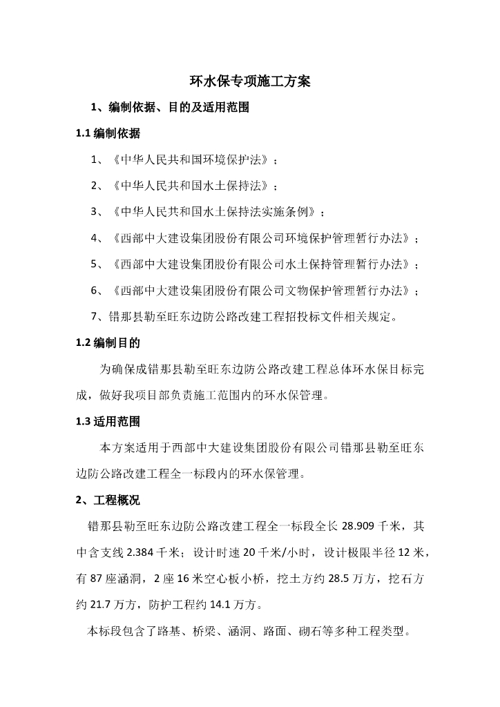公路改建水土保持施工方案.doc