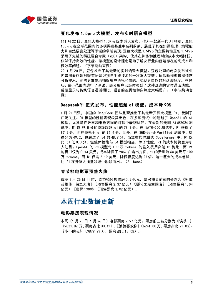 国信证券:传媒互联网行业周报:OpenAI、豆包、Deepseek等发布重磅更新,春节档票房预售火热.pdf