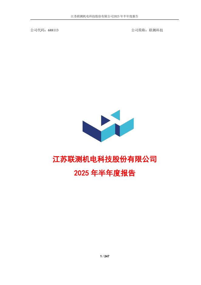 688113-联测科技:江苏联测机电科技股份有限公司2025年半年度报告.pdf