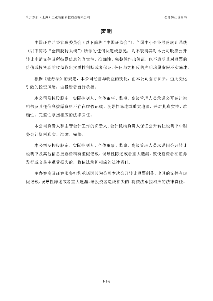 米开罗那(上海)工业智能科技股份有限公司新三板挂牌公开转让说明书(申报稿).pdf