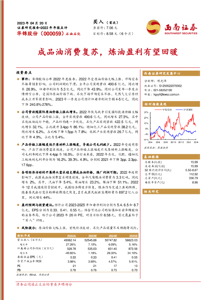 西南证券:华锦股份(000059)-成品油消费复苏,炼油盈利有望回暖.pdf