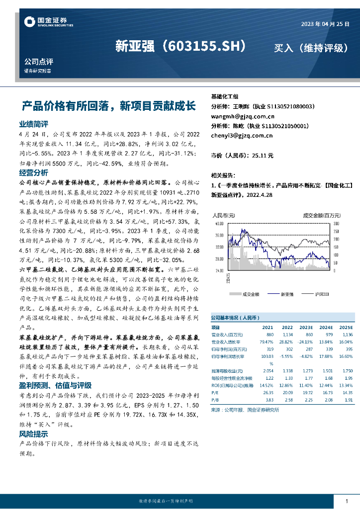 国金证券:新亚强(603155)-产品价格有所回落,新项目贡献成长.pdf