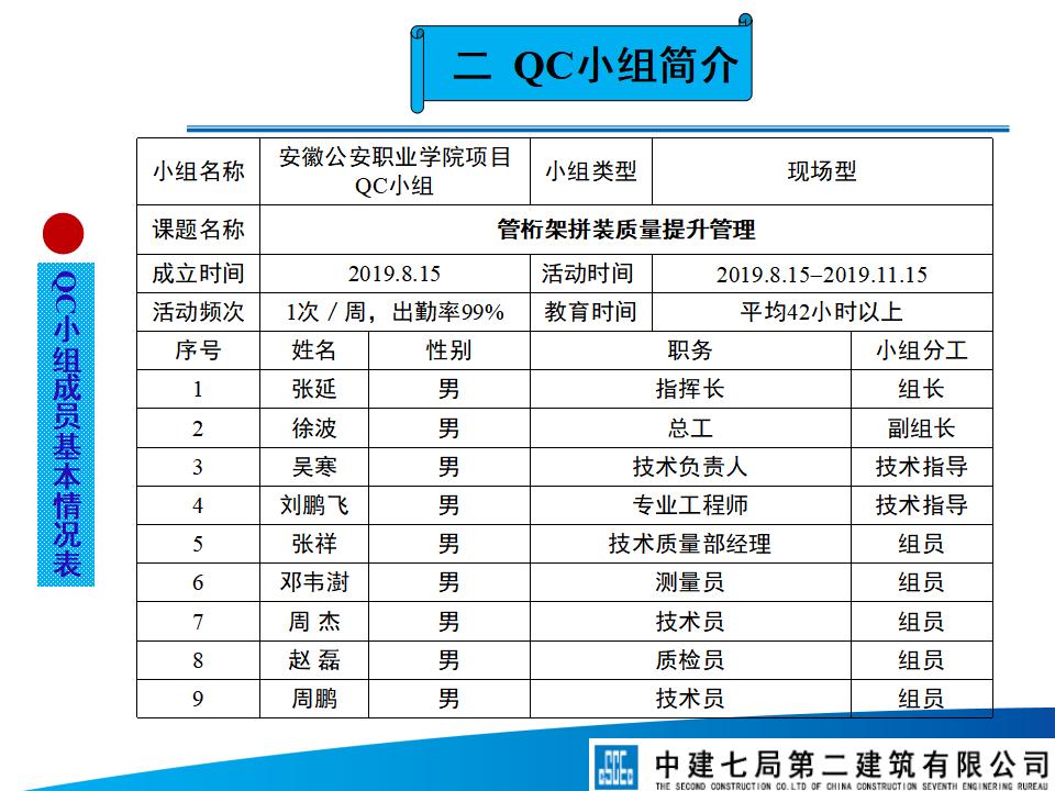 中建七局QC成果:管桁架拼装质量提升管理(公安职业学院项目).ppt