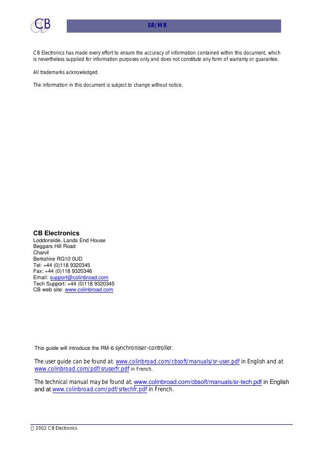 CB Electronics CB Electronics RM-6 Synchroniser入门指南.pdf
