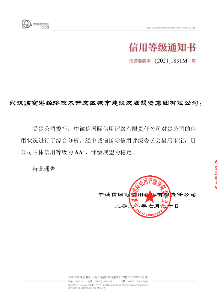 中诚信:武汉临空港经济技术开发区城市建设发展投资集团有限公司主体信用评级报告.pdf