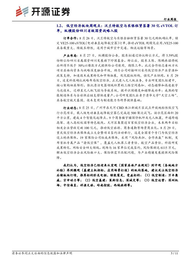 开源证券:电力设备行业周报:低空经济行业周报(第三十一期):沃兰特航空与农银租赁签署30亿eVTOL订单,纵横股份四川省级.pdf