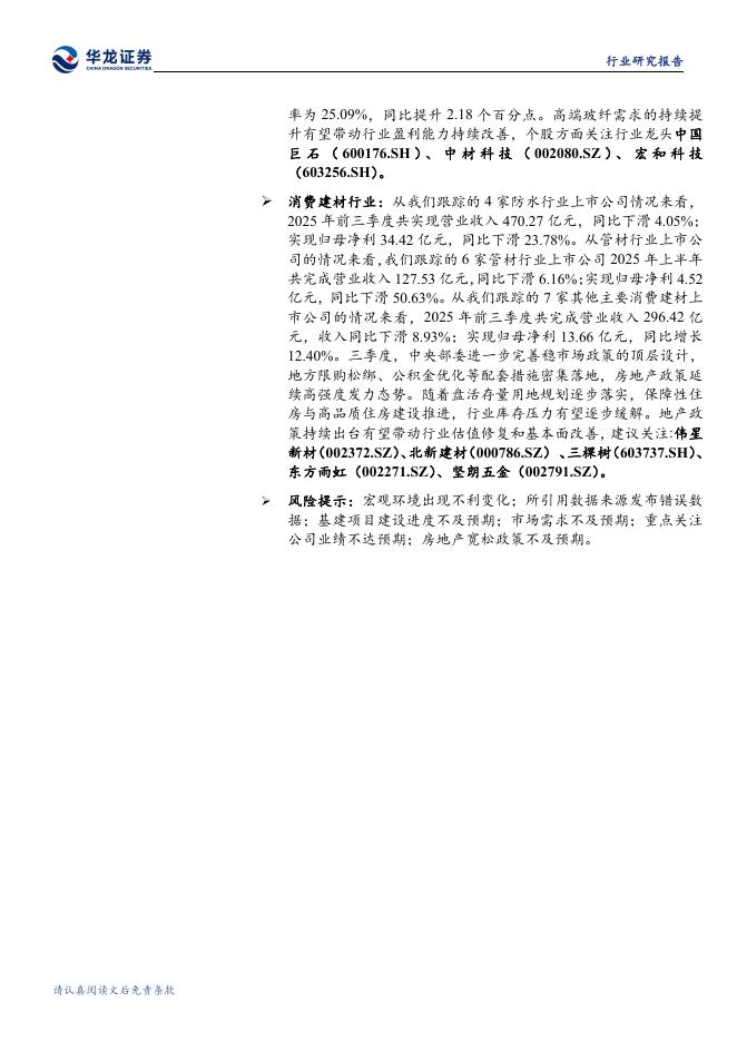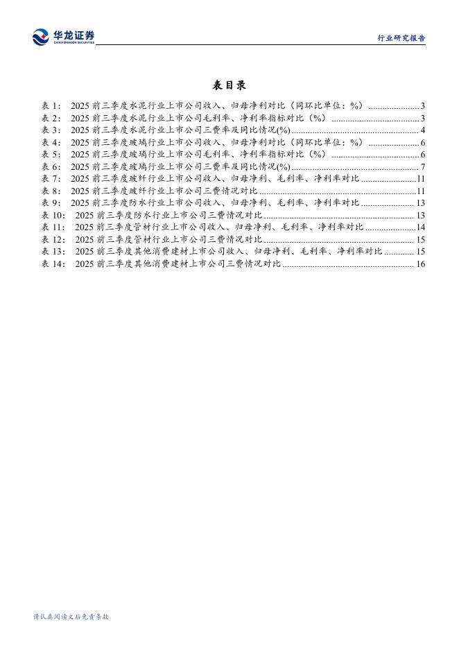 华龙证券:建筑材料行业2025年三季报综述:传统建材关注供给侧变化,高端材料有望带动相关行业盈利能力提升.pdf