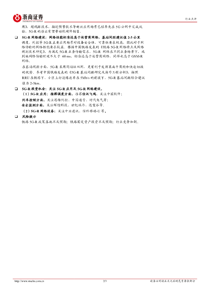 浙商证券:通信行业点评报告:5G-R试验频段获批,打开铁路5G新空间.pdf