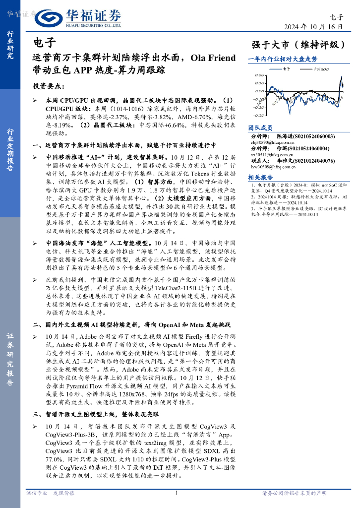 华福证券:电子行业算力周跟踪:运营商万卡集群计划陆续浮出水面,OlaFriend带动豆包APP热度.pdf