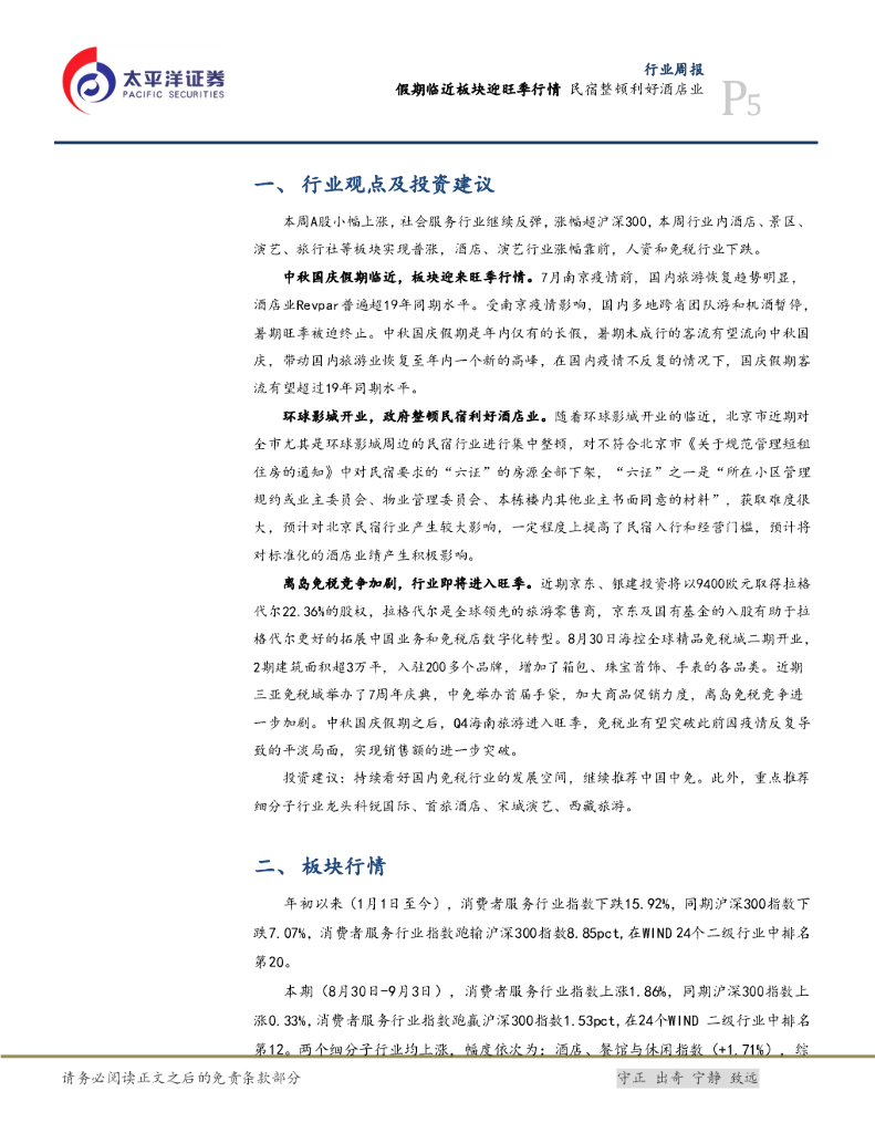 太平洋证券:消费行业周报:假期临近板块迎旺季行情 民宿整顿利好酒店业.pdf