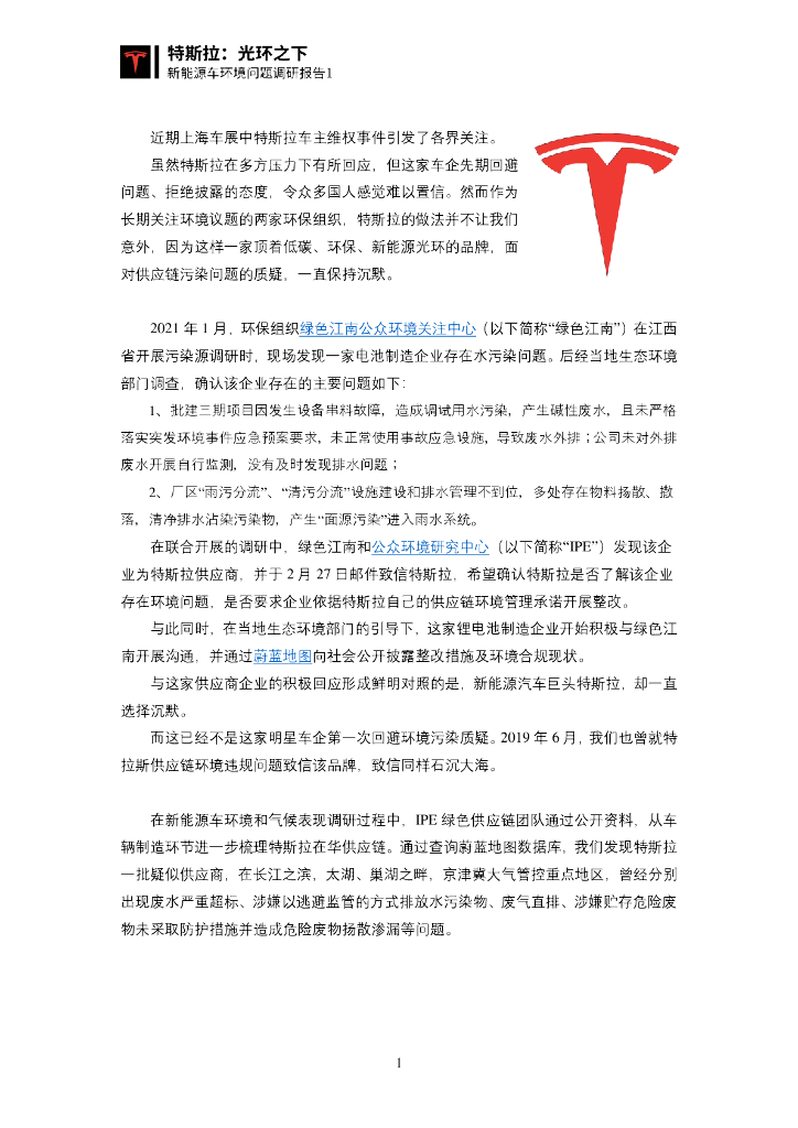 IPE公众环境研究中心:光环之下的特斯拉——新能源汽车环境问题调研报告1.pdf