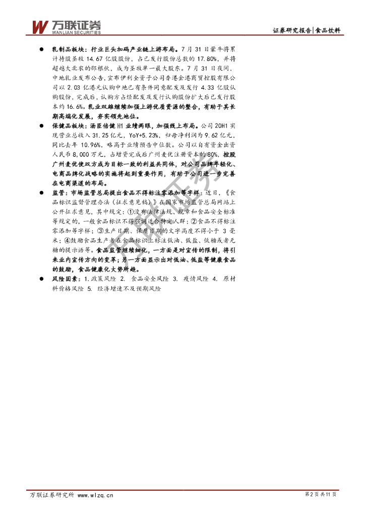 万联证券:食品饮料行业周观点报告:茅台直营加速放量,乳业双雄加码产业链上游布局.pdf