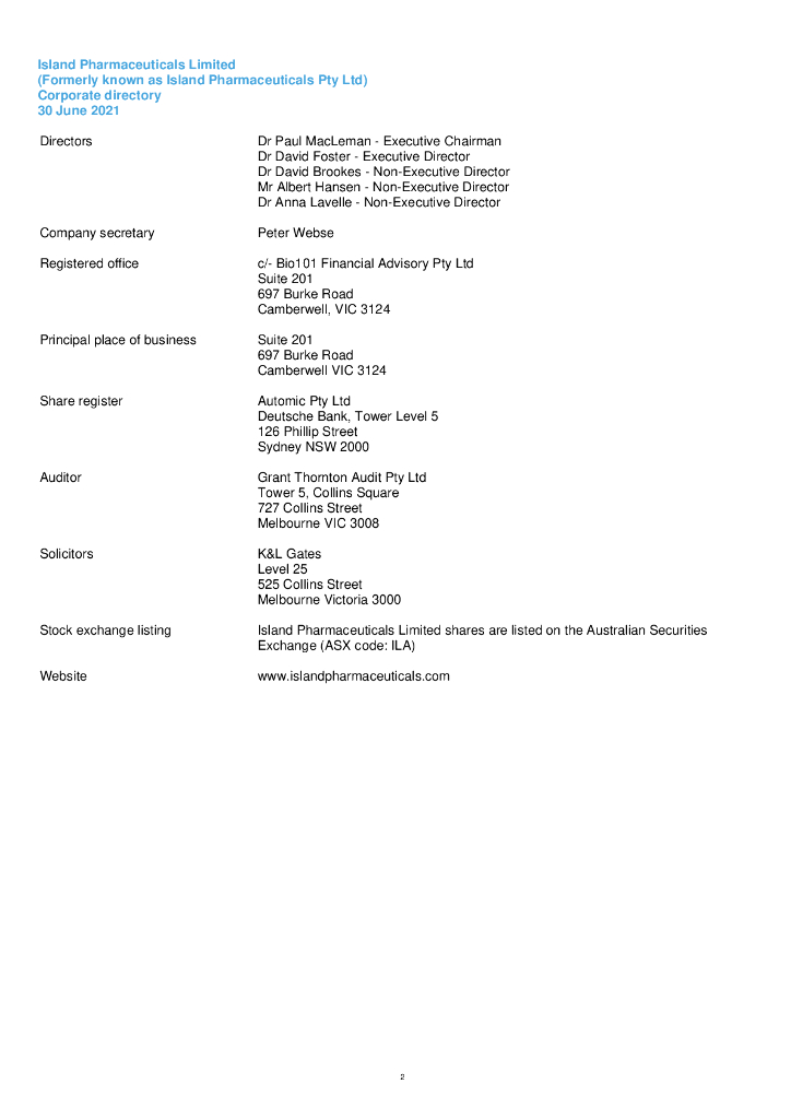 Island Pharmaceuticals(ILA)2021财年年度报告(英文版).pdf