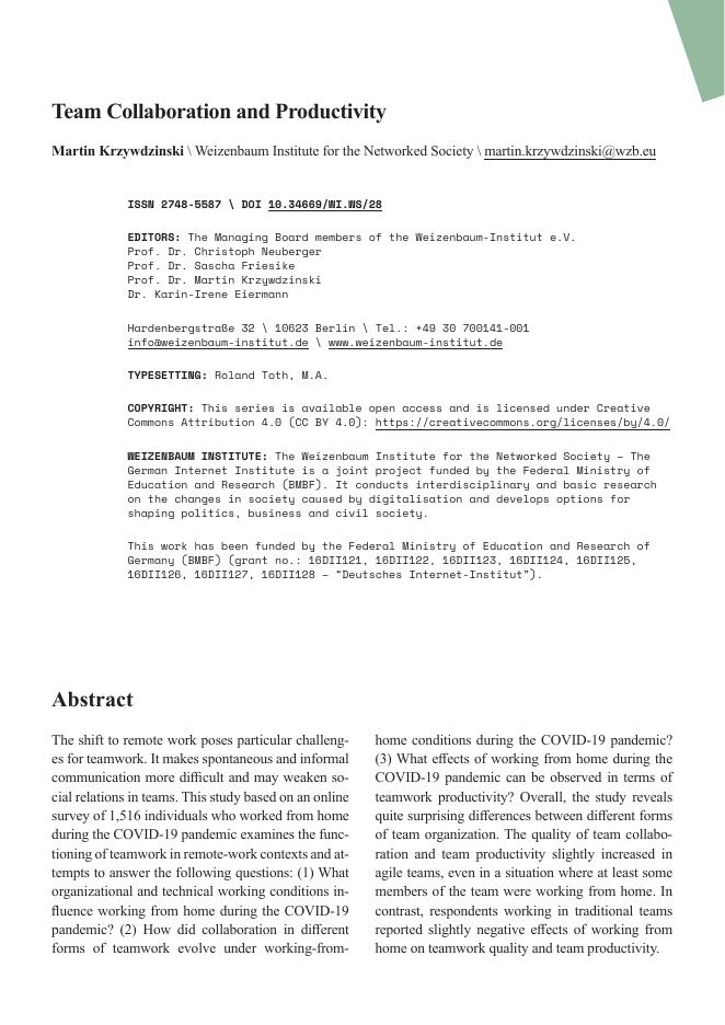 Weizenbaum Institute:团队协作与生产力-COVID-19大流行期间敏捷、混合和传统团队进行远程工作的经验(英文版).pdf