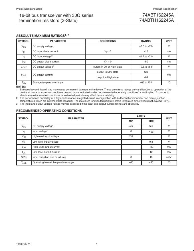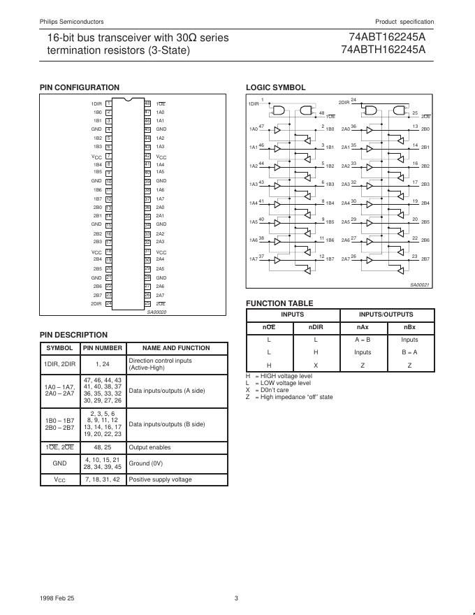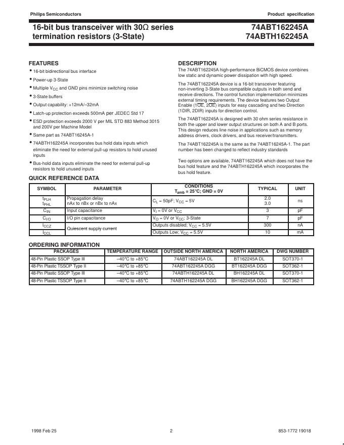 飞利浦 74ABT162245A, 74ABTH162245A 数据手册.pdf