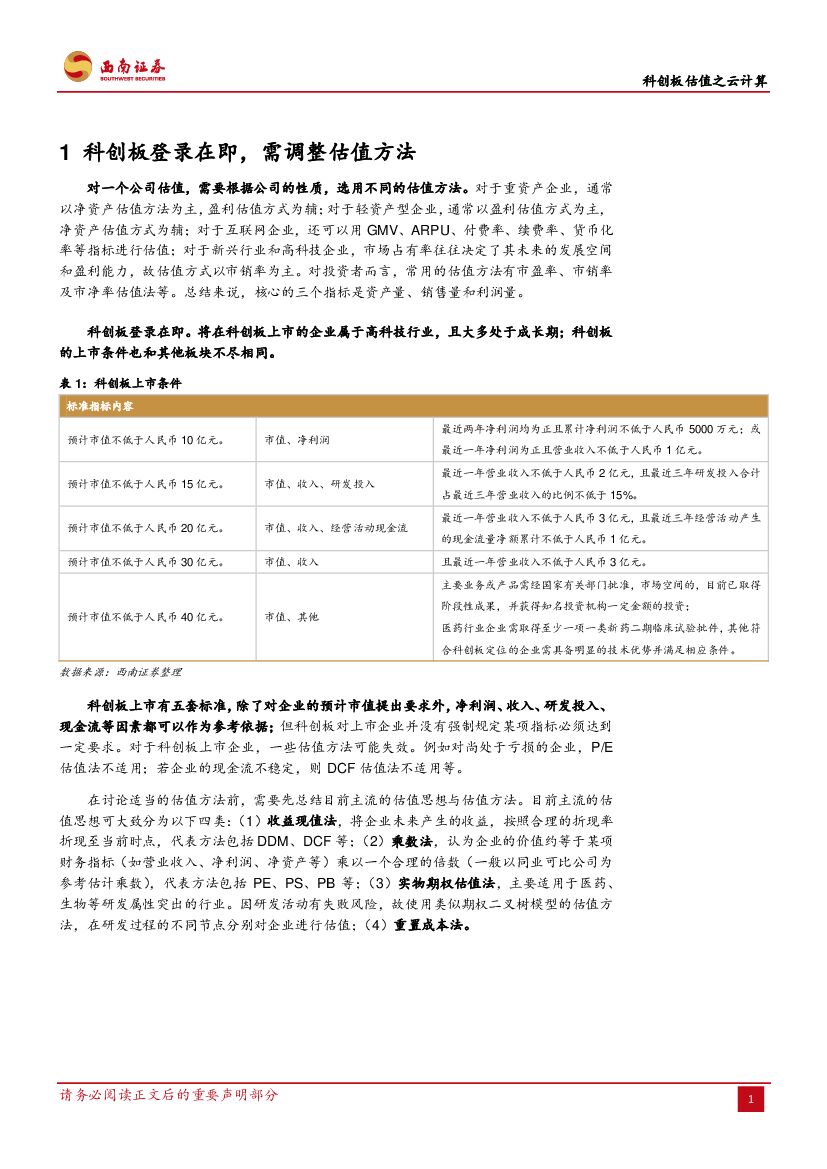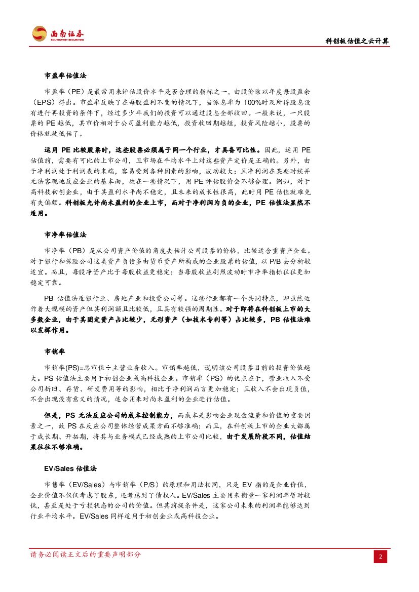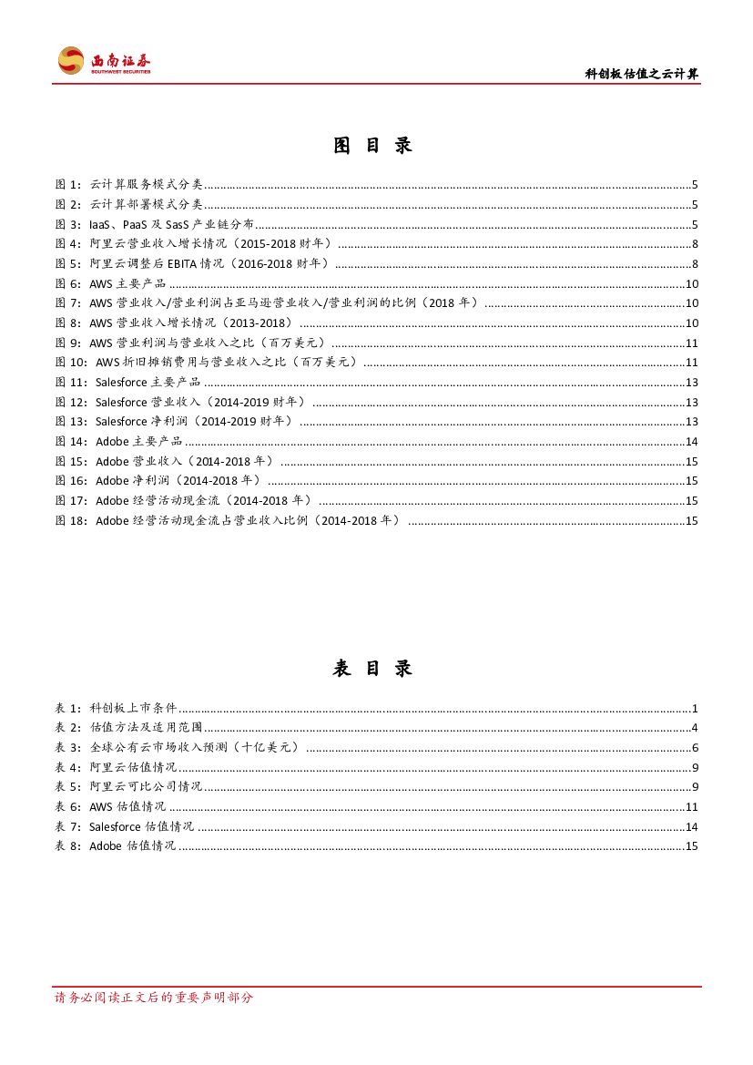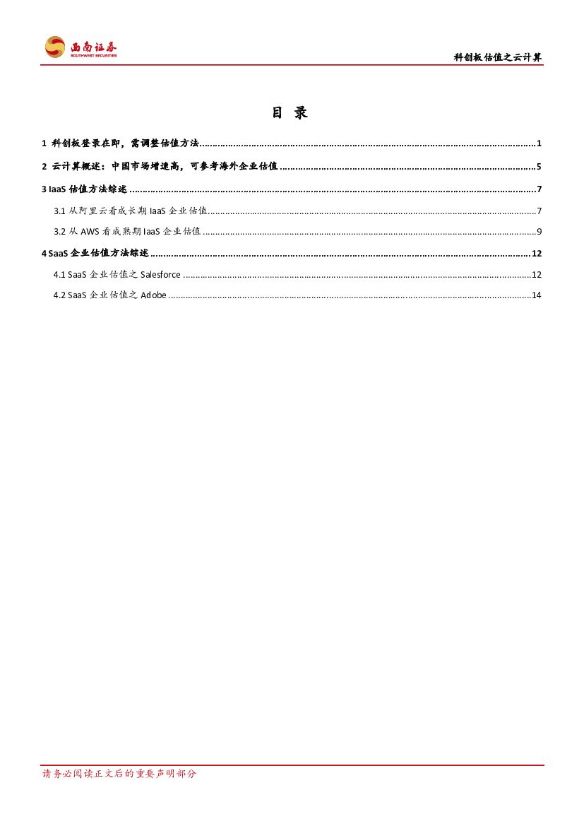 西南证券:通信:科创板估值之云计算-以海外估值为例,阐述云计算估值方式.pdf