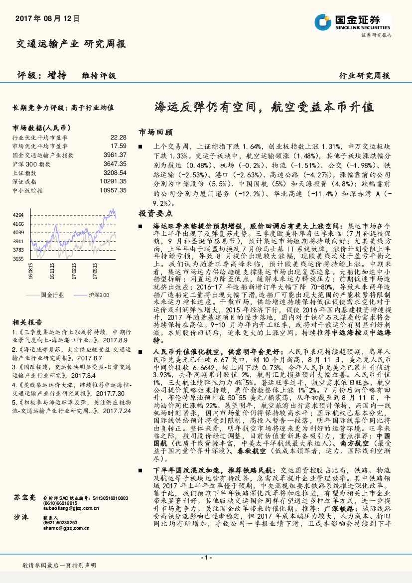 国金证券:交通运输产业研究周报:海运反弹仍有空间,航空受益本币升值.pdf