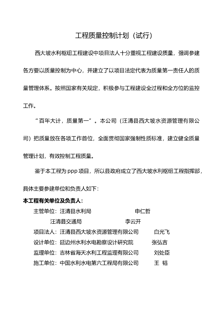 水利分项工程质量控制计划.doc
