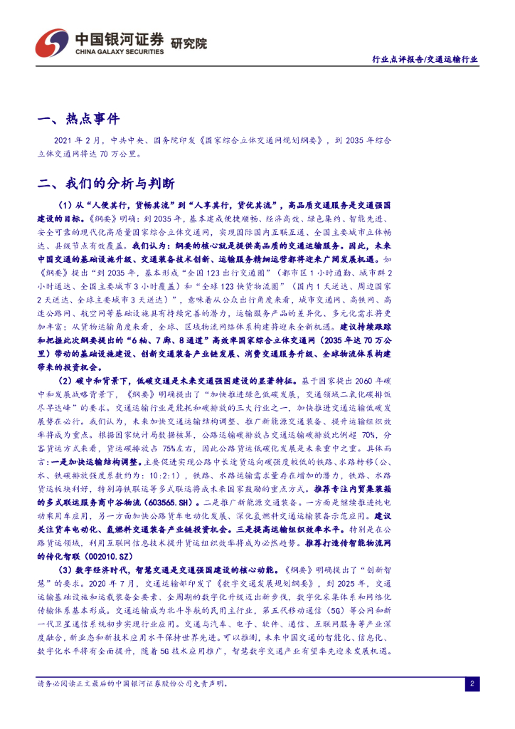 中国银河:交通运输行业:《国家综合立体交通网规划纲要》发布,催生交通领域结构性投资新赛道.pdf