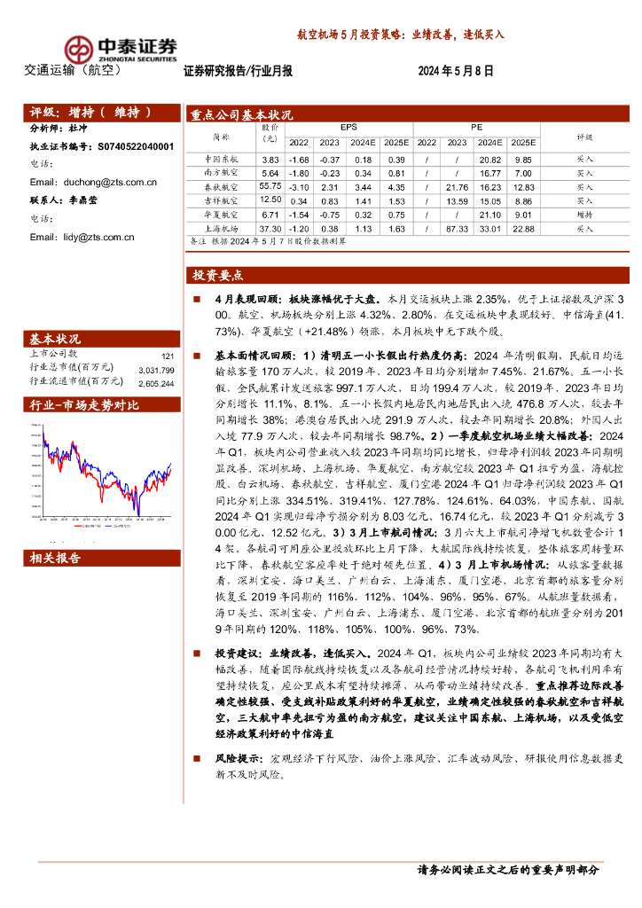 中泰证券:航空机场5月投资策略:业绩改善,逢低买入.pdf