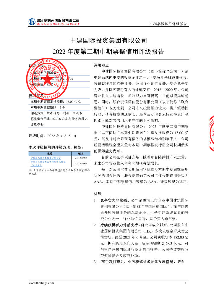 联合资信:中建国际投资集团有限公司2022年度第二期中期票据信用评级报告.pdf