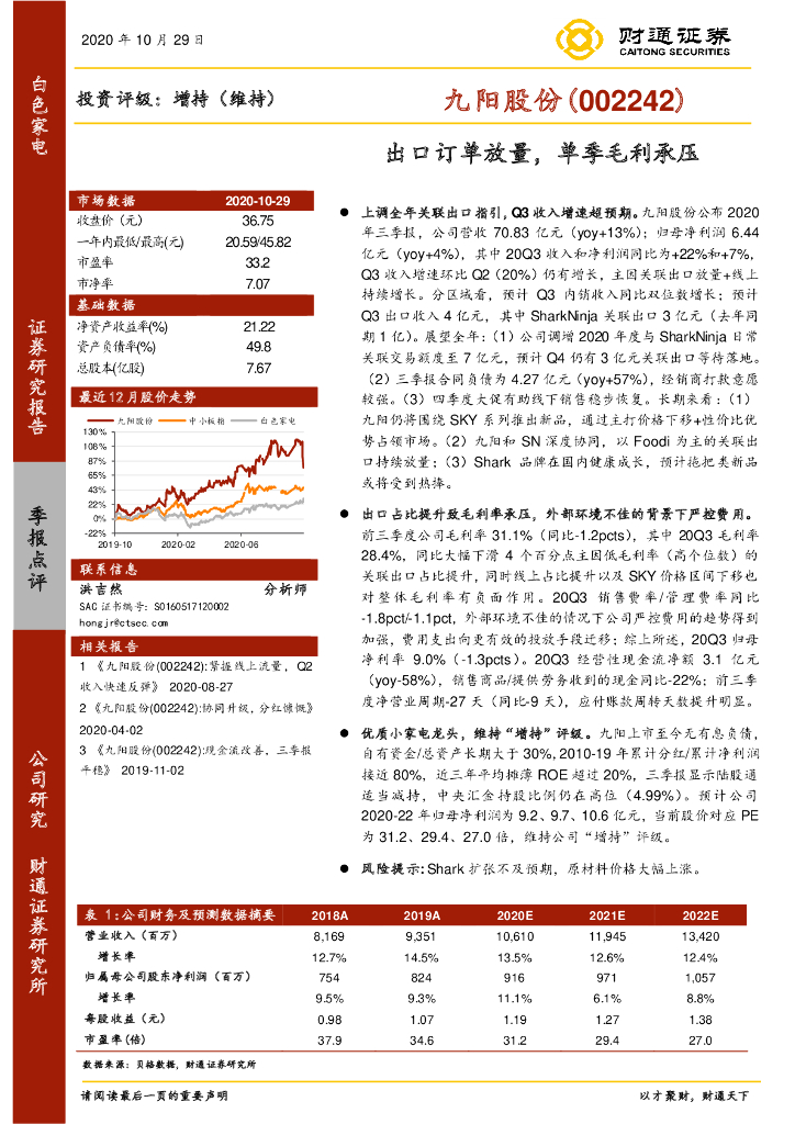财通证券:九阳股份(002242)-出口订单放量,单季毛利承压.pdf